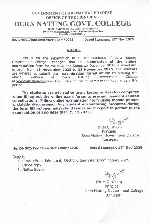 NOTICE: Examination Online Form Submission