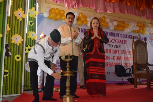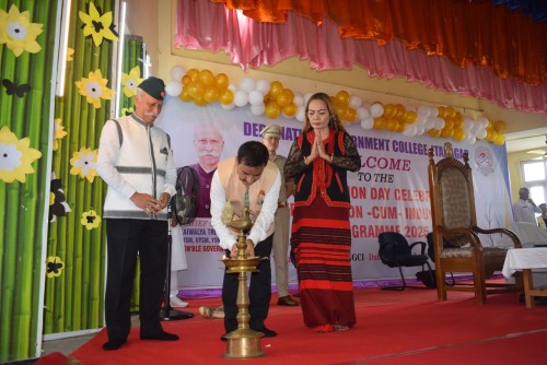 The Principal of DNGC, Dr. M. Q. Khan, welcomed everyone and thanked them for their presence. He focused on the importance of the Foundation Day celebration, saying that it helps students remember the rich history of the institution and feel motivated to scale new heights. He presented a brief on journey and achievements of Dera Natung Government College emphasising that the alumni and students of the college have made the college to hold its head high. He further highlighted that 54 students of DNGCI emerged top ten rank holders including twelve overall top ten rank holdersof RGU- Exam - 2025 and this is the highest in the state.
